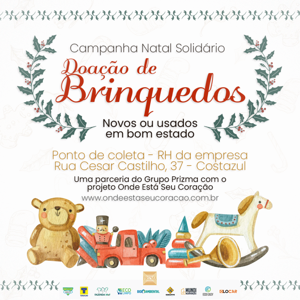 Ofim do ano está se aproximando – e com ele o desejo de muitas crianças de receber um presente de Natal. Você que tem criança em casa – e quem não tem também – estão mais que convidados a deixar muitas crianças felizes com este pequeno gesto de doação de brinquedos para os mais necessitados. Neste ano em especial o Grupo Prizma está apoiando o projeto Onde Está Seu Coração, que ajuda pessoas carentes no sertão nordestino.